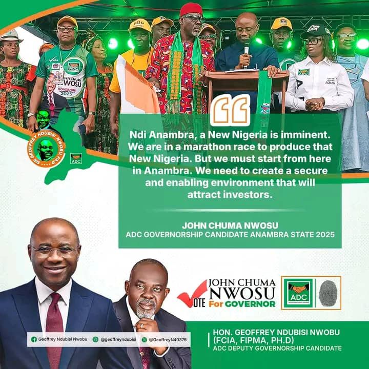 Amid growing dissatisfaction, the people of Anambra are increasingly rallying behind the candidacies of John Chuma Nwosu and Dr. Geoffrey Ndubisi Nwobu. It is becoming increasingly clear that, among the candidates vying for election on November 8, only the African Democratic Congress (ADC) fields candidates who not only embody integrity but are also deeply committed to harnessing our collective resources for the development of Anambra State.